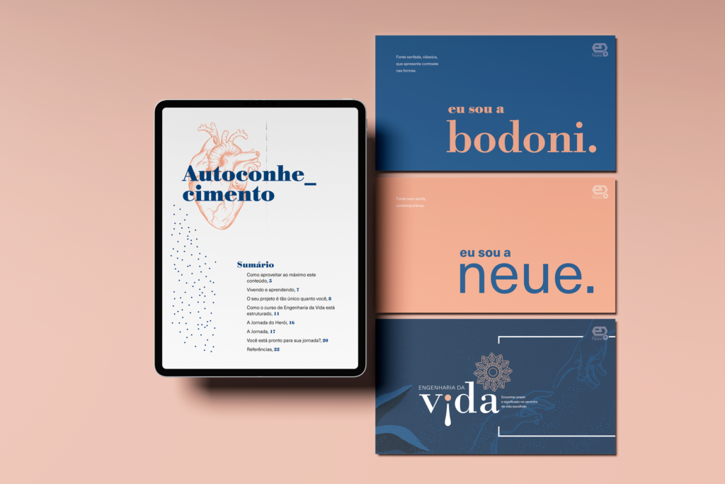 Desenvolvimento de logotipos, paleta de cores, tipografia e diretrizes visuais.